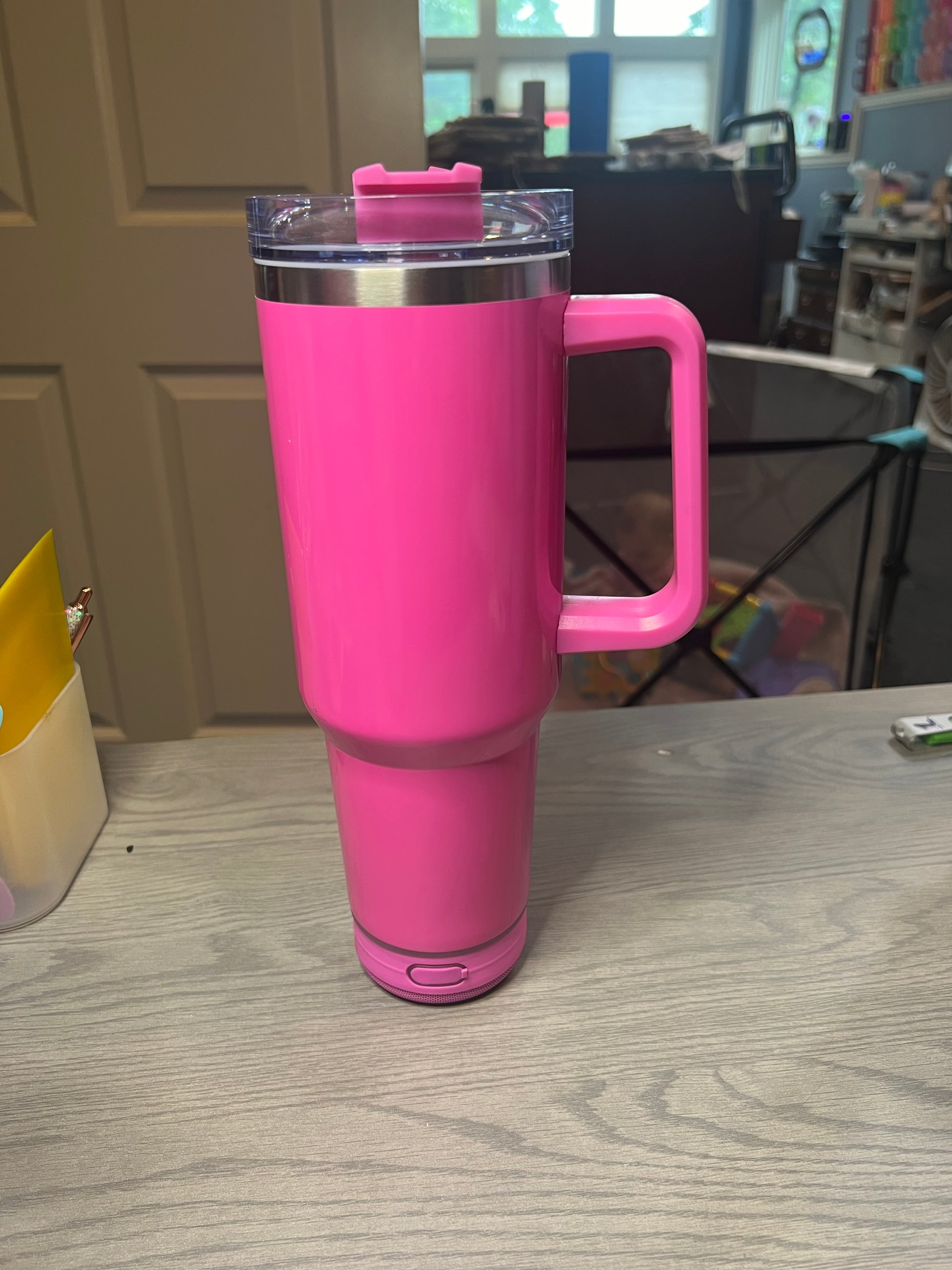 Never forget your cup or speaker again with this 40 oz Bluetooth speaker cup! Durable, water resistant and removable, it's perfect for outings. Keep the tunes and refreshments flowing with ease.